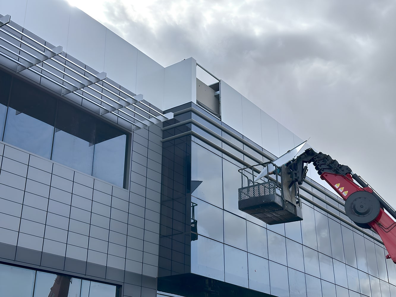 350 m² Cam Cephe Giydirme: Cam cephe giydirme, doğal ışık alımını maksimize ederek iç mekanların aydınlık ve ferah olmasını sağlarken, aynı zamanda enerji verimliliğine de katkıda bulunuyor.