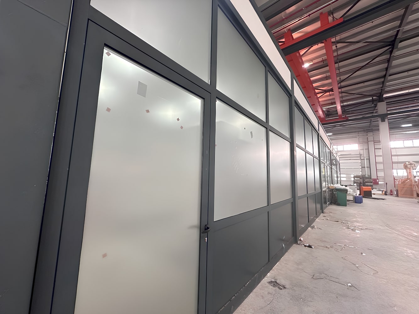 1.200 m² Isı Yalıtımlı Alüminyum Doğrama İmalatları: Kapılar, pencereler ve ofis ara bölümleri, enerji verimliliğini artırma ve estetik bir görünüm sunma amacıyla yüksek kaliteli alüminyum malzemelerle tasarlandı.